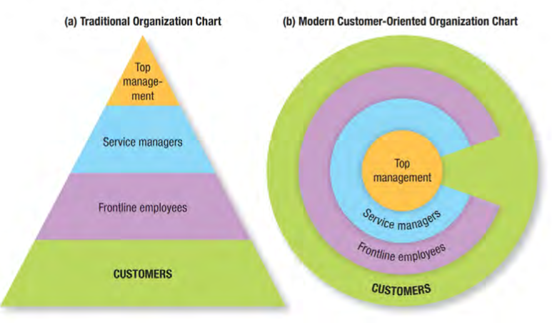 ဘယ်လိုဖွဲ့စည်းပုံပဲဖြစ်ဖြစ် ကုမ္ပဏီရဲ့ အောင်မြင်မှုဟာ ဌာနအားလုံးရဲ့ ပူးပေါင်းဆောင်ရွက်မှုအပေါ် မူတည်ပါတယ်။ “Building a Customer-Oriented Organization” (ဖောက်သည်ကို ဦးတည်တဲ့ အဖွဲ့အစည်းတစ်ခု တည်ဆောက်ခြင်း) ဆိုတဲ့ မူနဲ့အညီ ဖောက်သည်တွေဟာ အရေးအကြီးဆုံးဖြစ်ပြီး စီမံခန့်ခွဲမှုရဲ့ အခန်းကဏ္ဍကတော့ ဝန်ထမ်းတွေကို ထောက်ပံ့ဖို့ပဲ ဖြစ်ပါတယ်။